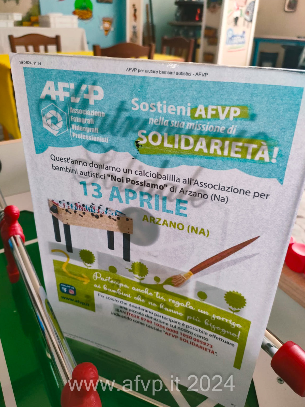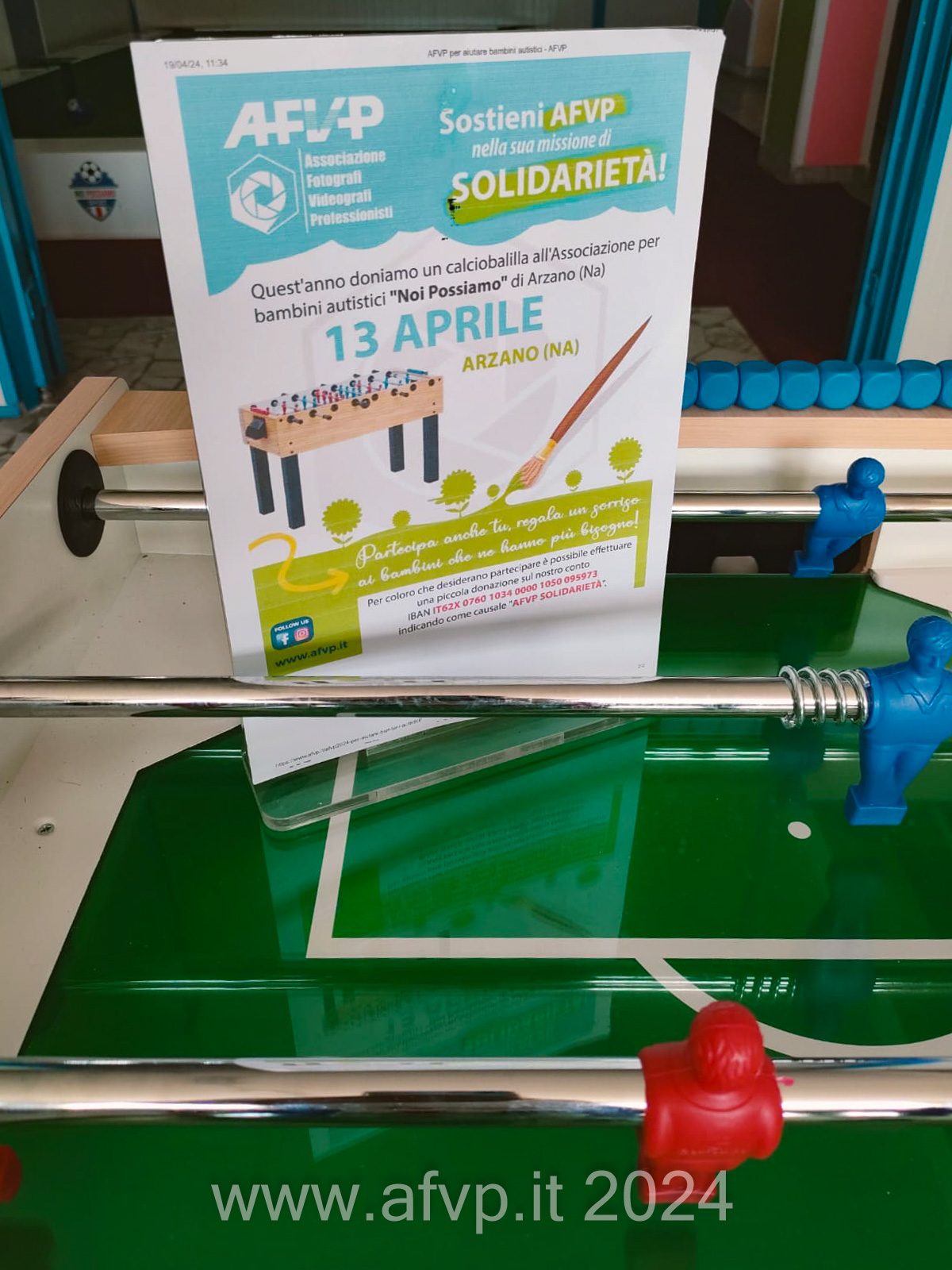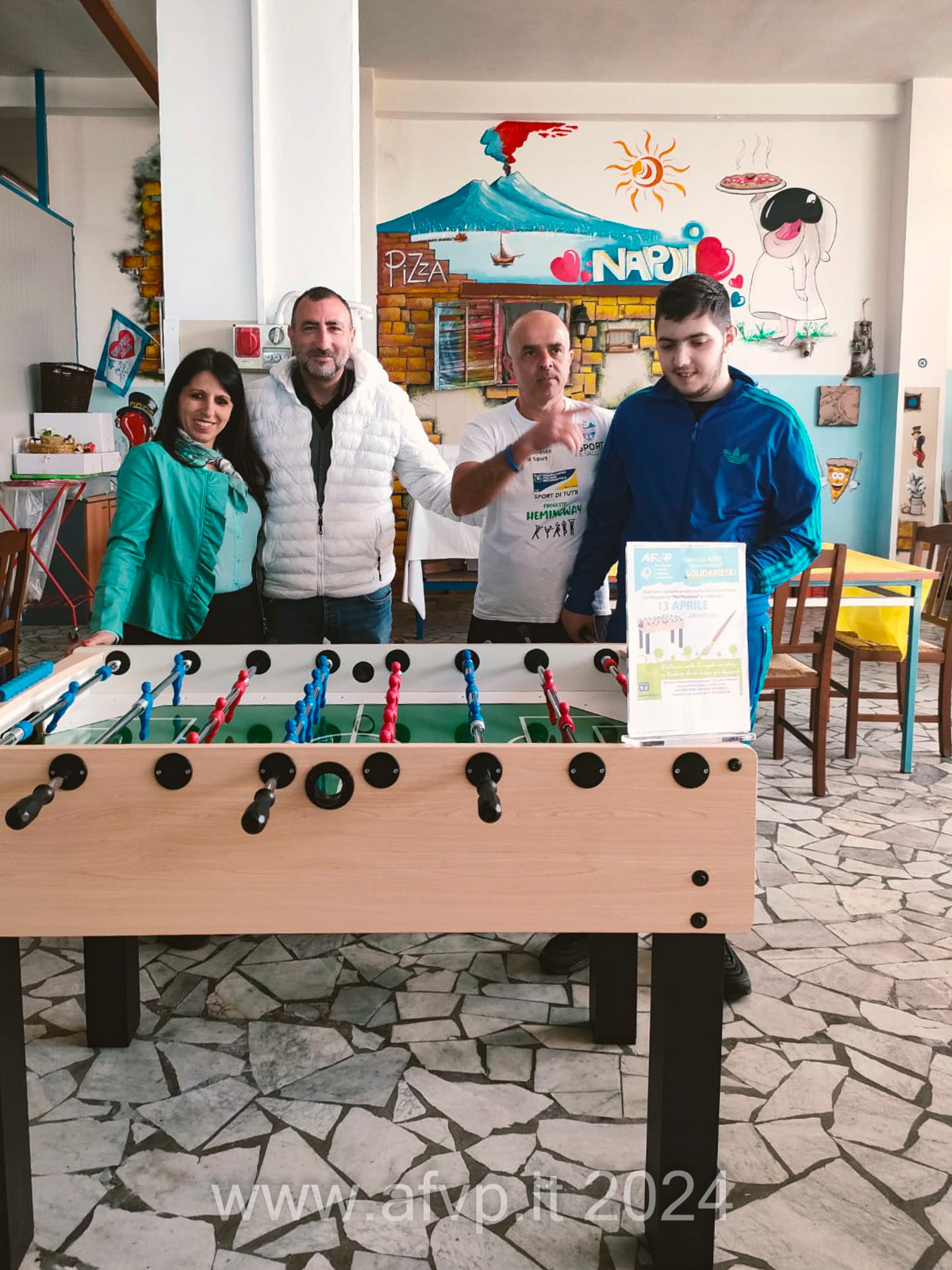 Stamane una delegazione di soci AFVP ha fatto dono di un calcio balilla all’Associazione “Noi possiamo APS” di Arzano, che aiuta bambini affetti da disabilità.
